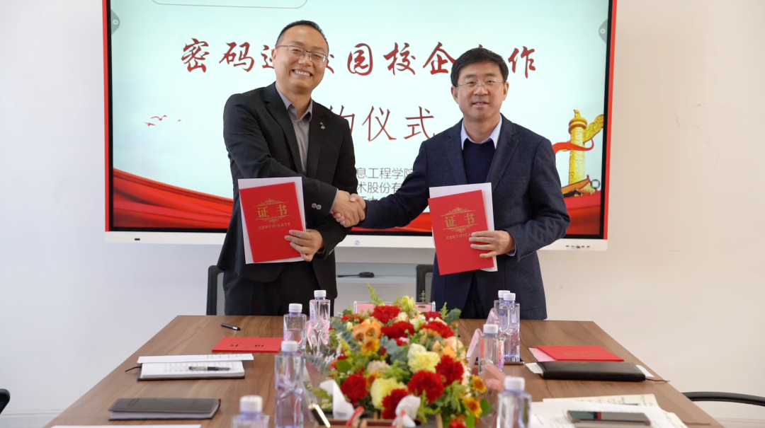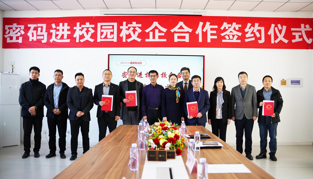 在第八个国家宪法日来临之际,为深入贯彻落实《中华人民共和国密码法》,进一步加快密码专业人才队伍建设步伐,打通我区密码产学研创新链、价值链,12月1日,“密码进校园校企合作签约仪式”在宁夏大学信息工程学院成功举行。此次签约仪式由宁夏密码管理局指导,宁夏商用密码协会会员单位凯发k8官网信息技术股份有限公司、西部安全认证中心有限责任公司同宁夏大学信息工程学院签署战略合作协议,共同为我区密码学科建设、密码实训基地建设、密码人才培养贡献力量。宁夏密码管理局副局长李大苞,商密处副处长丁杰,宁夏大学信息工程学院党委书记武林波、院长冯锋、副书记孙莉、副院长杨军、学科主任李贯峰,凯发k8官网信息技术股份有限公司董事长郭刚,西部安全认证中心有限责任公司常务副总经理耿方,区内其他商密企业代表等出席了签约仪式,签约仪式由宁夏商用密码协会秘书长赵军主持。